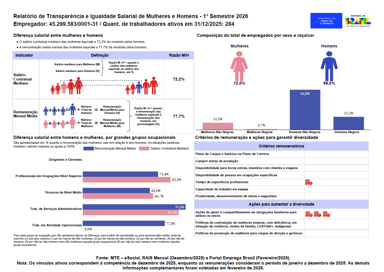 Assim, a Marispan registra que não lhe foi garantida a oportunidade constitucional de esclarecer os motivos e as justificativas para certas diferenças que são apresentadas neste Relatório de Transparência Salarial.